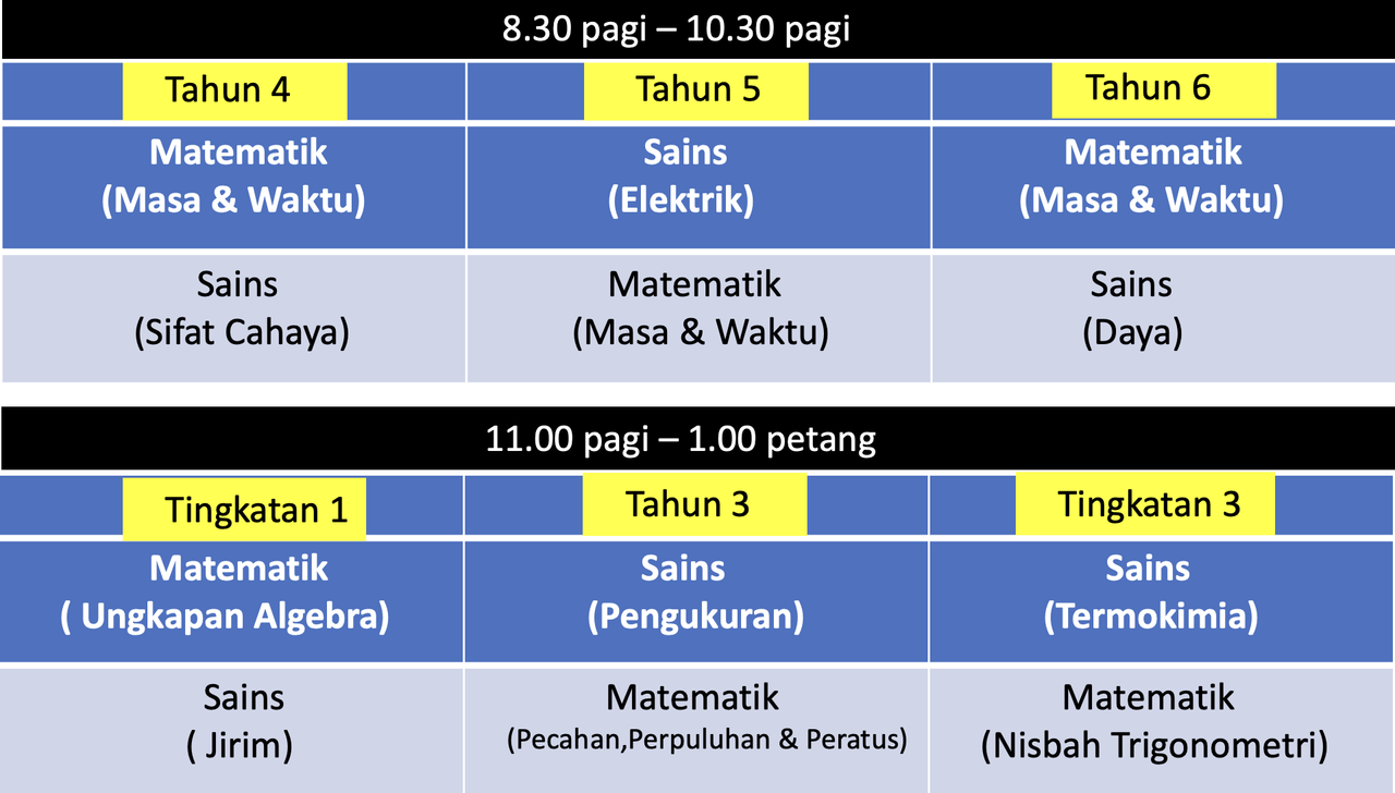 (Program berbeza ikut umur.Tak campur-campur kecuali Form 4 & 5)